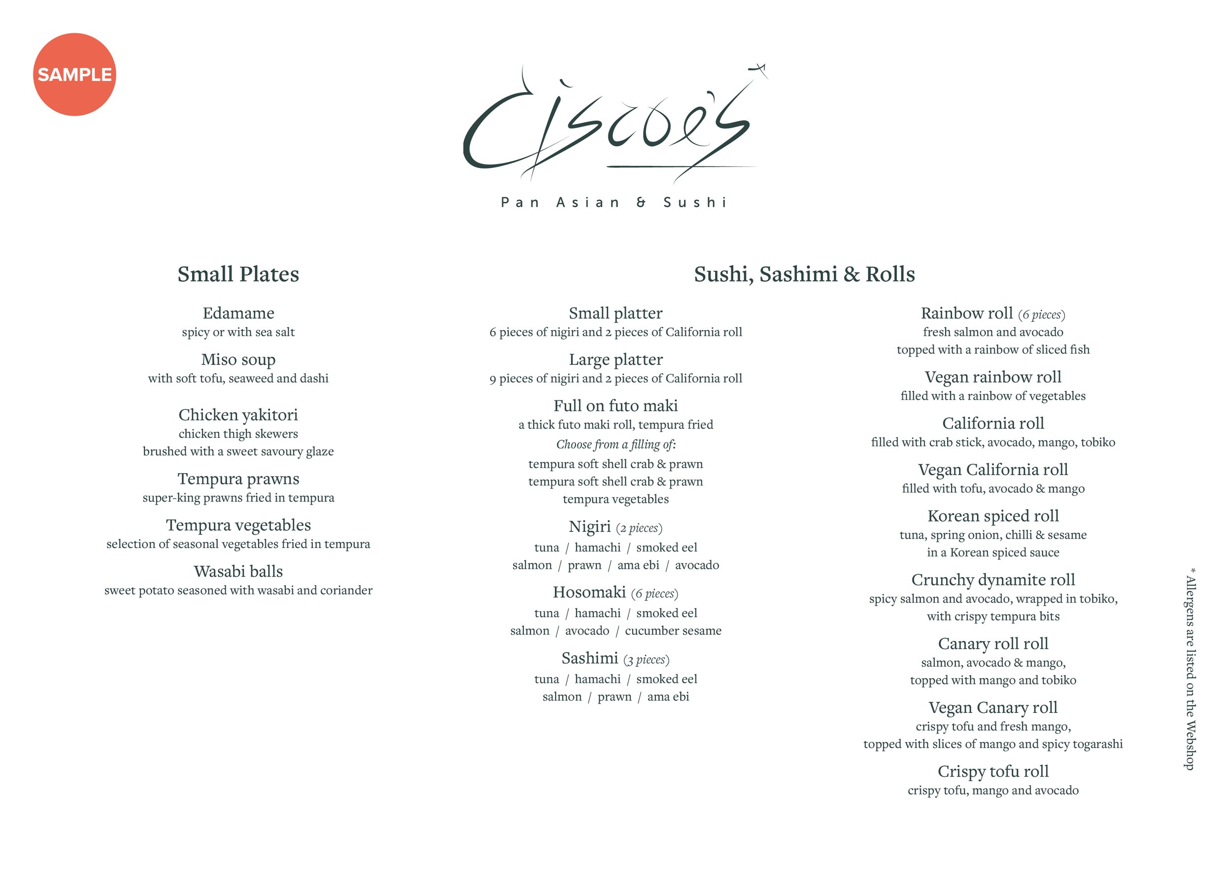 All allergens will be listed on the Webshop.